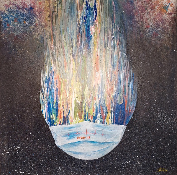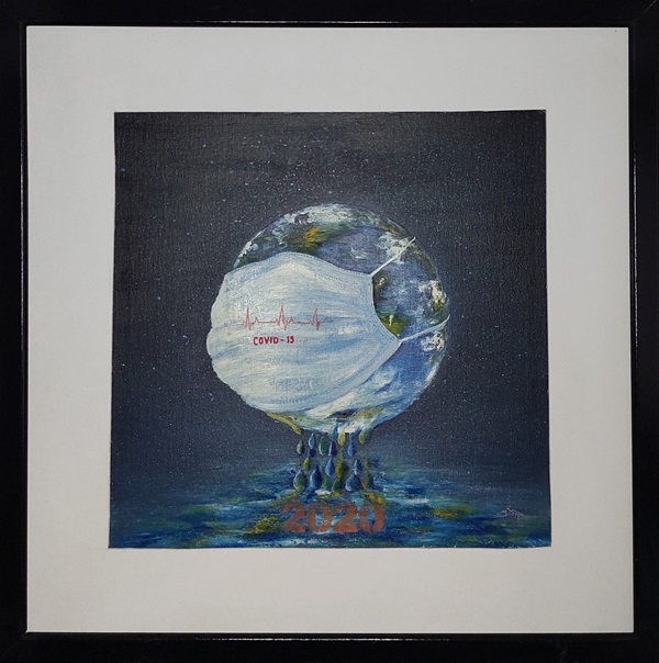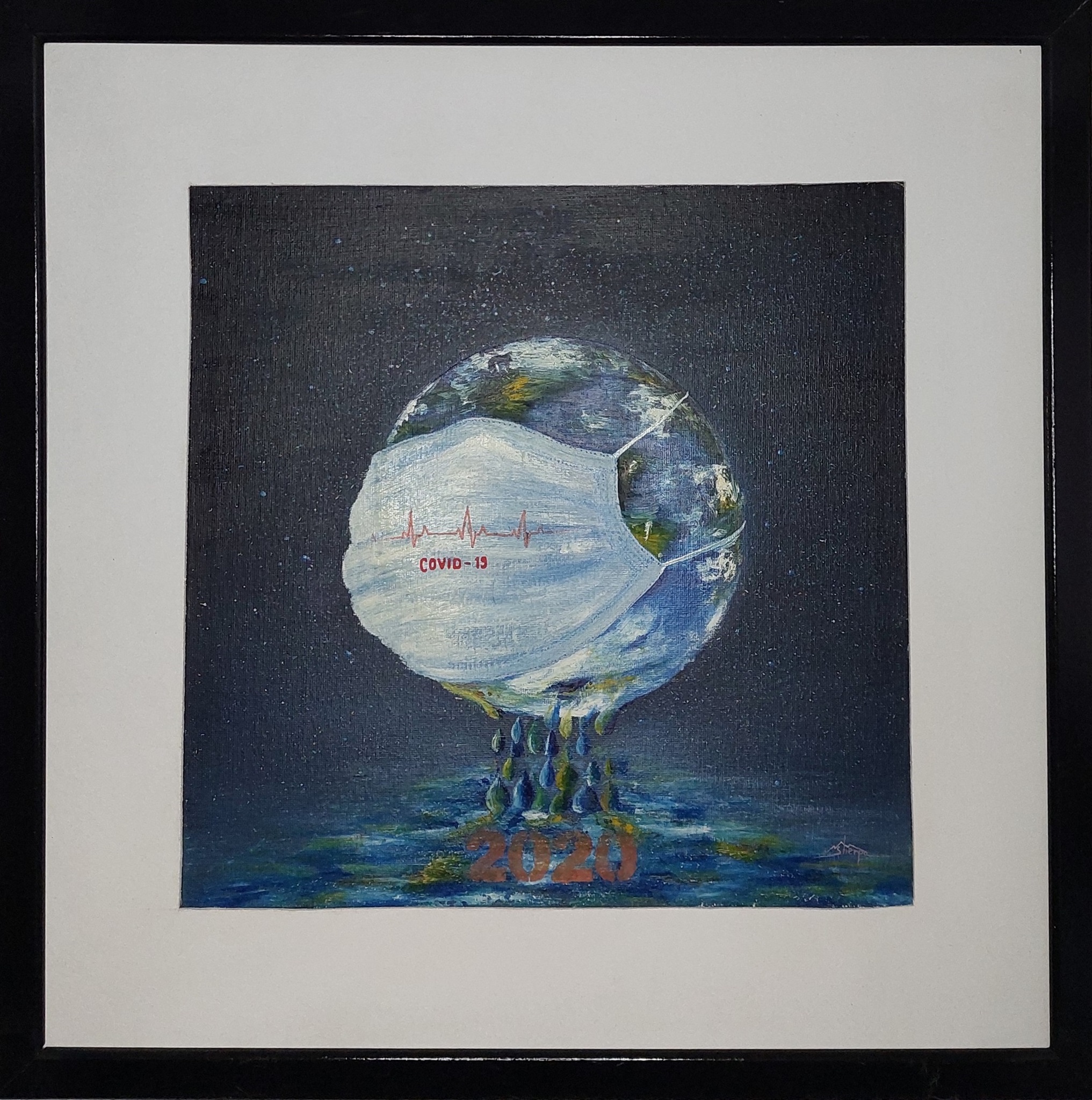 Each piece captures the essence of our shared journey, using masks as symbols of resilience and the new normal we faced. While these paintings do not feature landscapes, they convey powerful messages about humanity, connection, and hope in the midst of adversity.